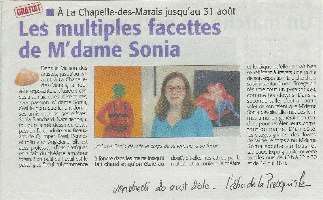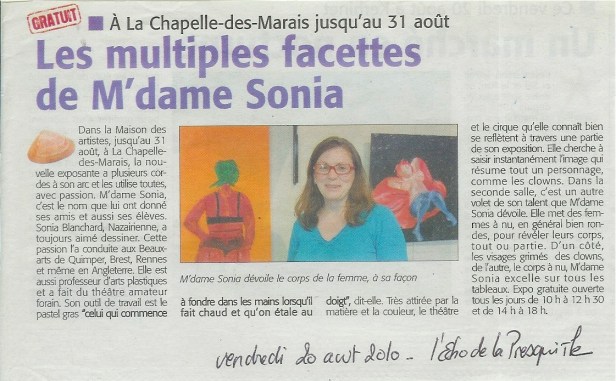 Revue de Presse 2010 artiste en escapade Date: 25 août 2010Author: mdamesonia 0 Commentaires J’aime chargement…